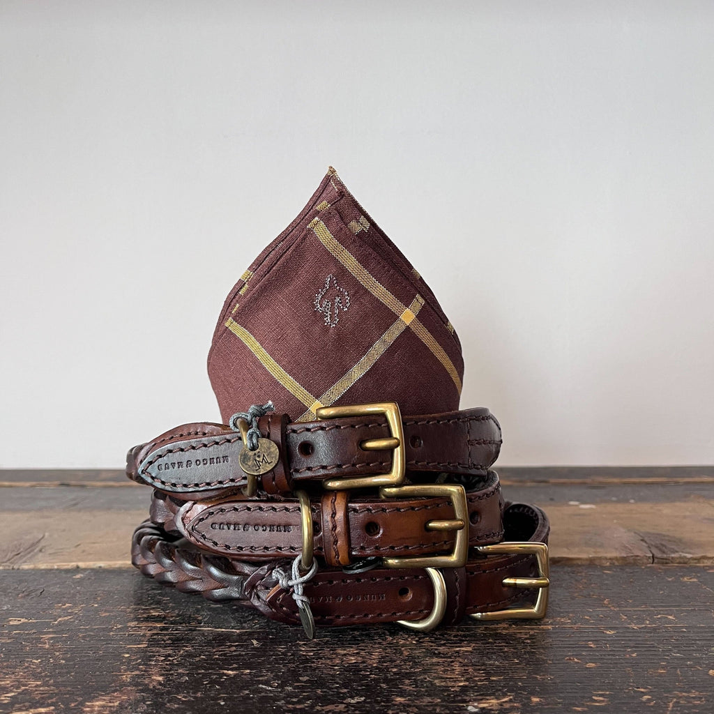 Lifestyle Image: Bandana Brown Plaid Leather Plaited Collars x 3