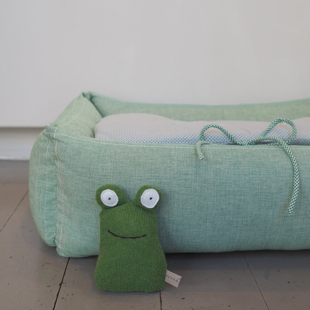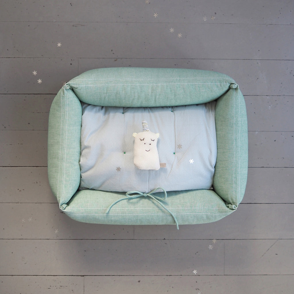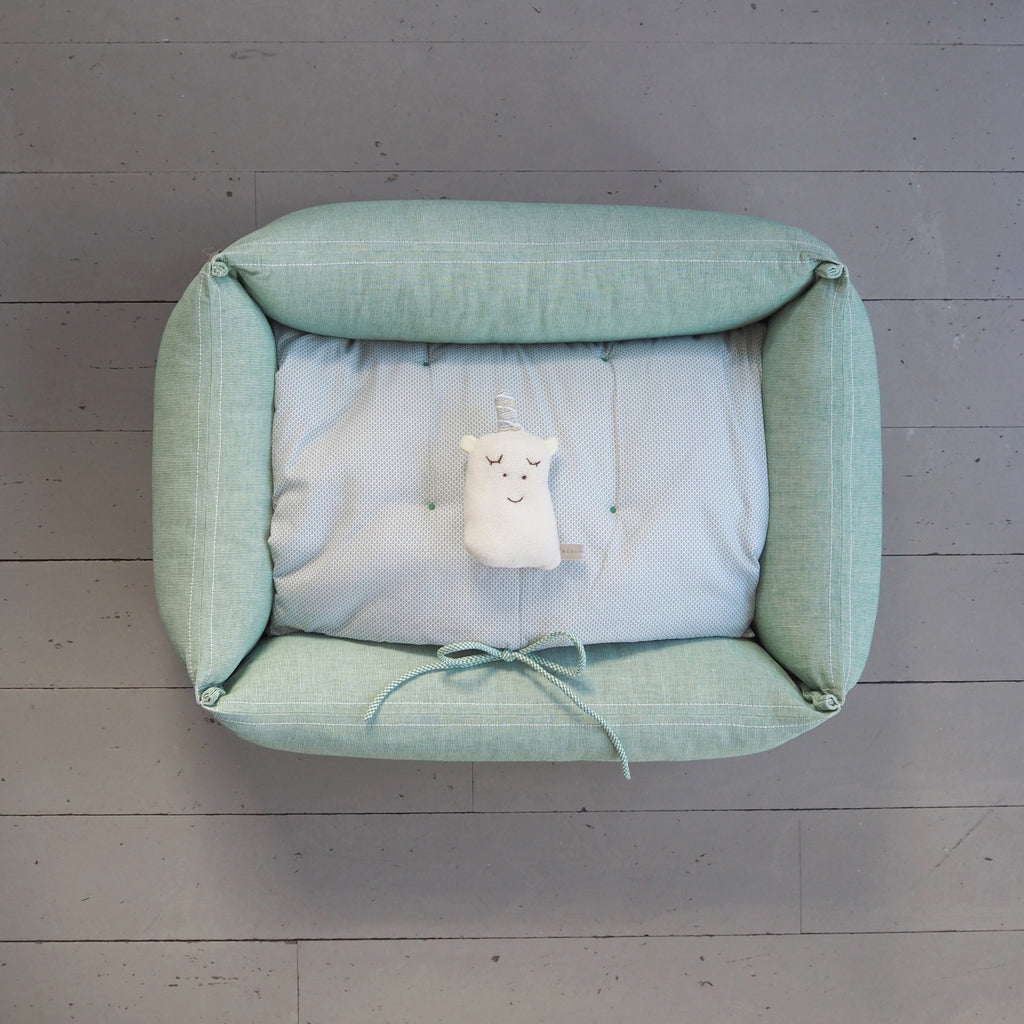 Pinstripe SpearmintFor the dog with a refined eye for style and a taste for luxury, the Mungo & Maud Classic Dog Bed takes napping to a whole new level. Upholstered in Mungo & Maud's beautiful woven pinstripe cotton with linear stitched edge details and a quilted cushion base, this classic is sure to make a dog's dreams come true.